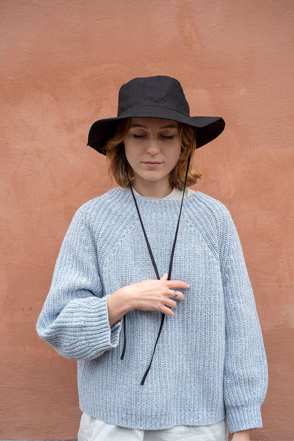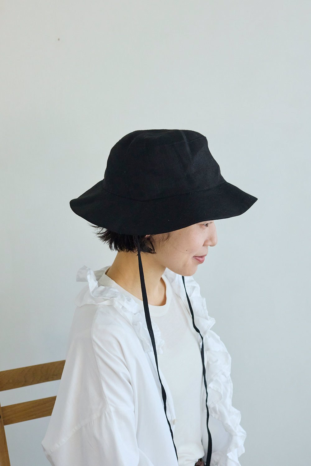サイドについた紐と、程よい長さのブリムが特徴のリネンハットです。