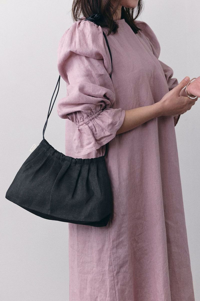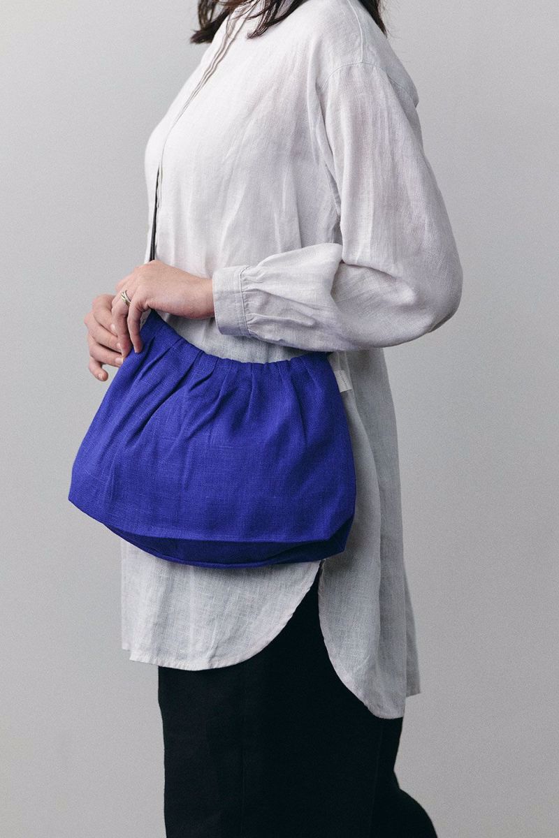 バッグの口にタックをとり、チャーミングな台形シルエットに仕上げました。