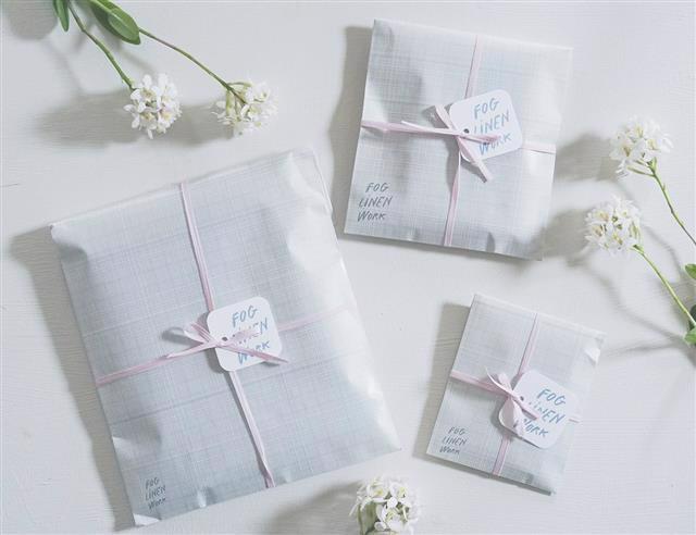 fog ギフトラッピングは、オリジナルの紙袋にピンクのリボンをかけた、シンプルなデザインです。ご希望の方には、メッセージカードの印字サービスも承っております。 |